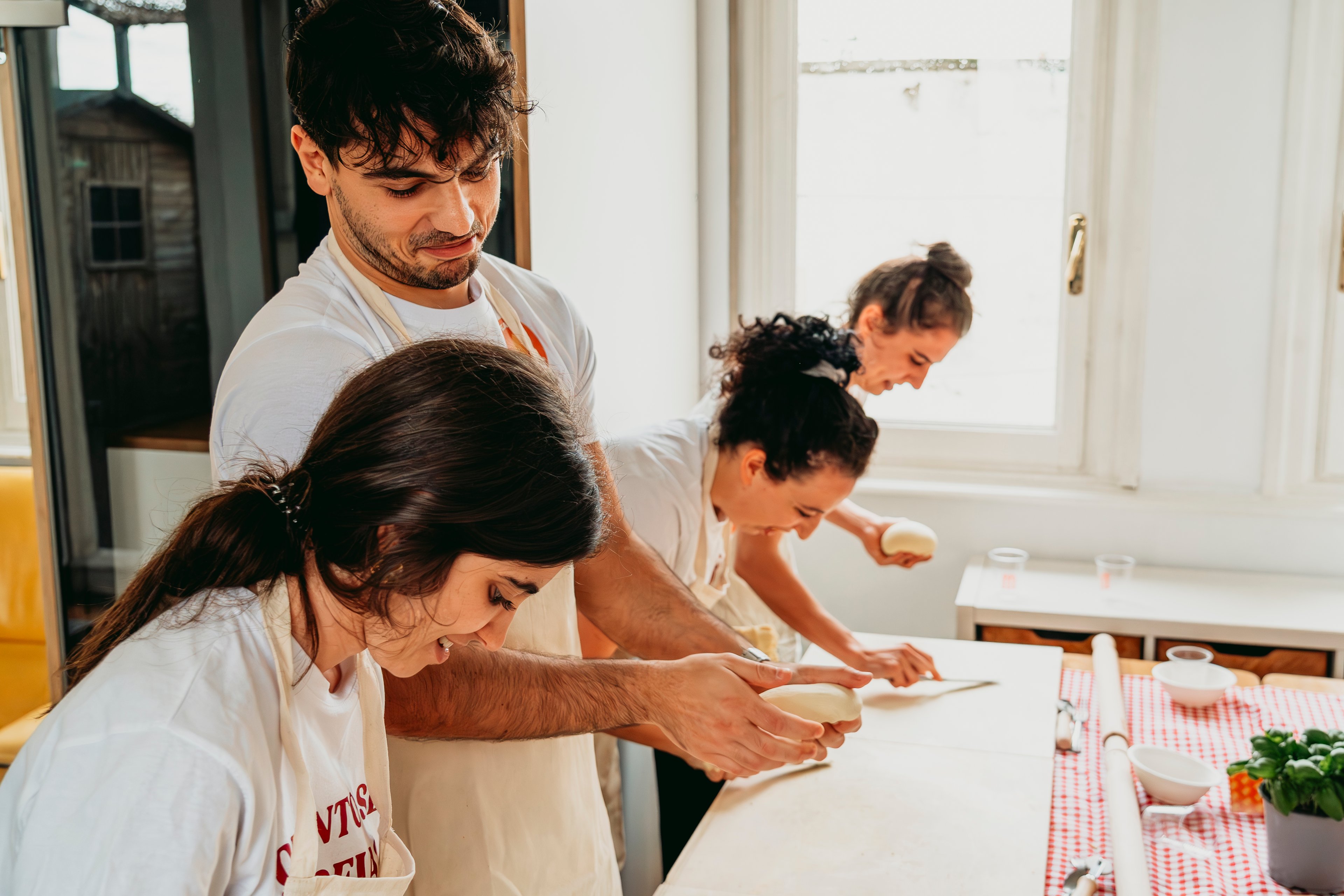 Serás guiado por nuestras mamás expertas en pasta, que te enseñarán a hacerla casi mejor que la abuela. Pero, sobre todo, sabrán hacer que te diviertas mientras aprendes.