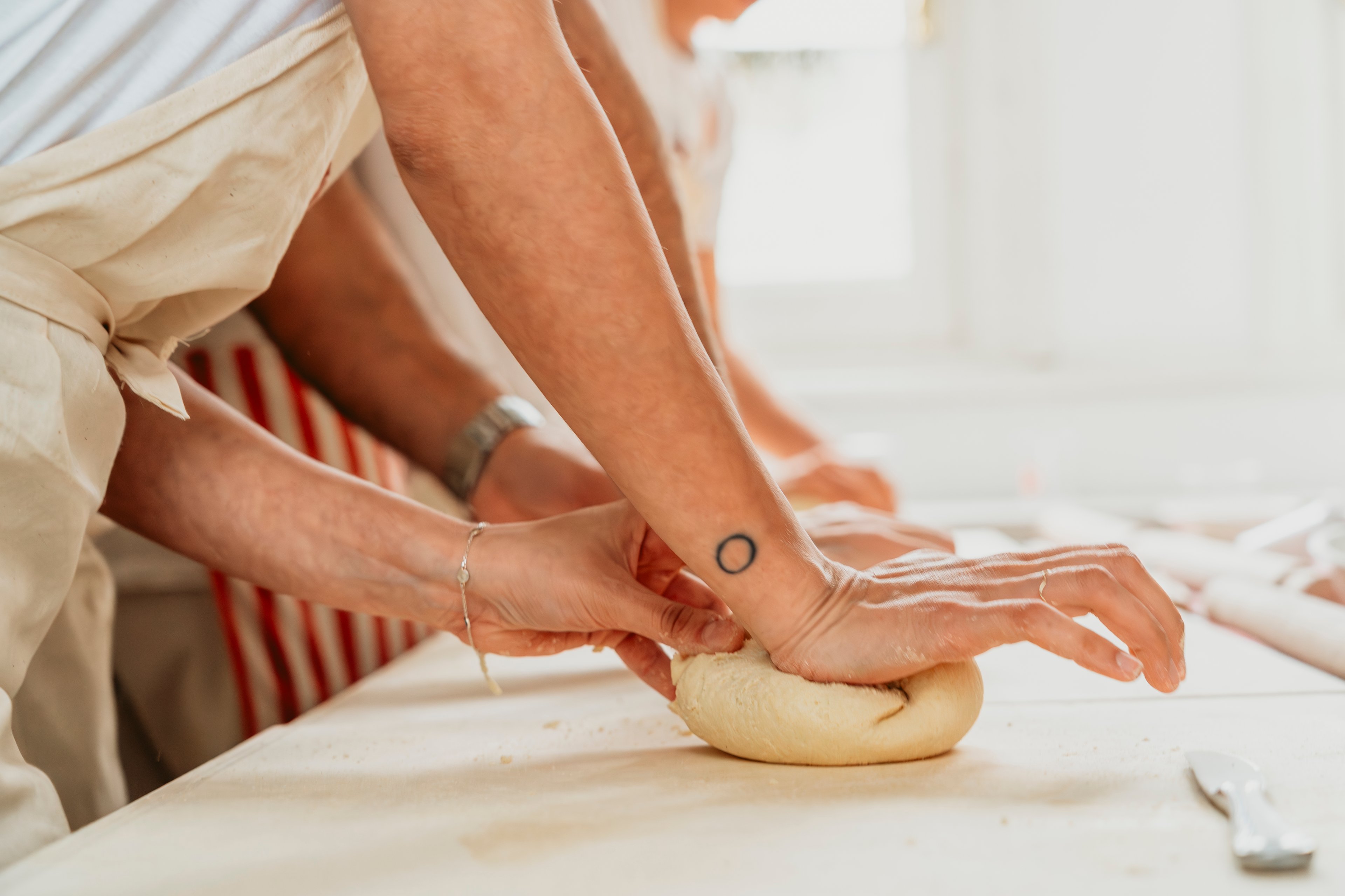 Hacerlo en grupo es más divertido. Que sean amigos, colegas, parientes o desconocidos, se convertirán en tus cómplices de harina. Tú pones las manos, nosotros ponemos agua y harina.