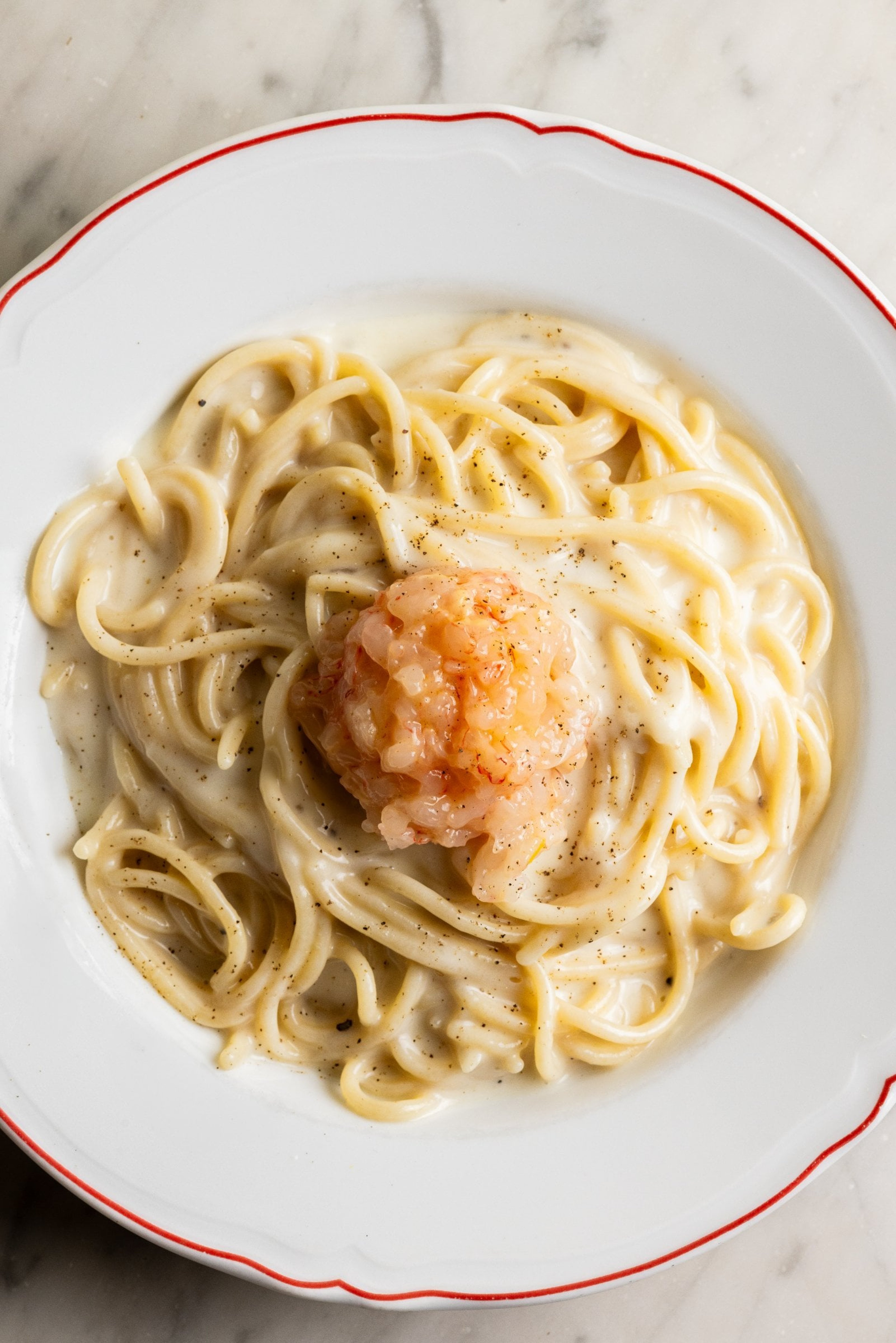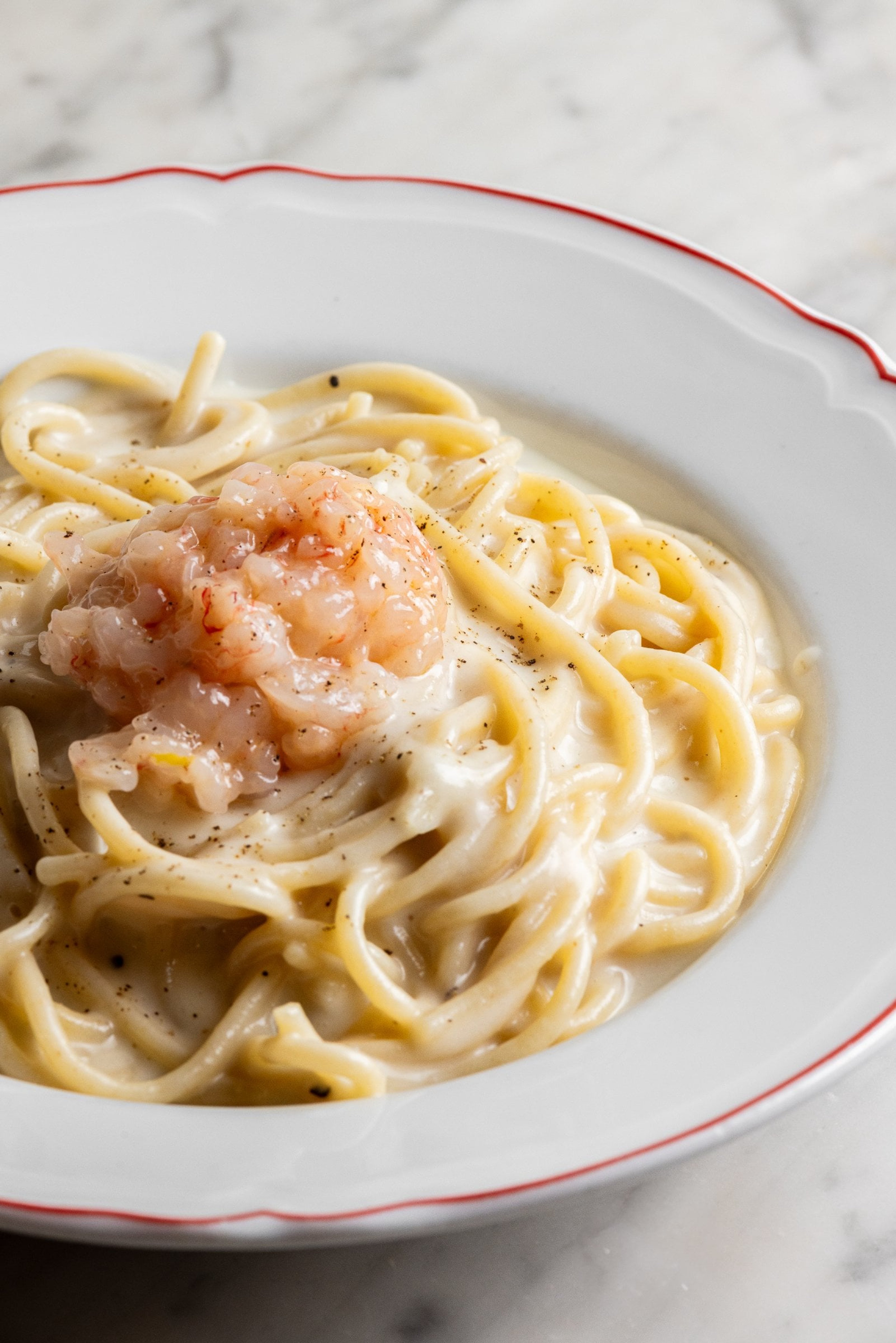Il connubio perfetto. La decisione del pecorino con la delicatezza del gambero di Mazara, la ricchezza del cacio con la freschezza della tartare. Se è vero che gli opposti si attraggono, questa ricetta è una dichiarazione d’amore eterno.