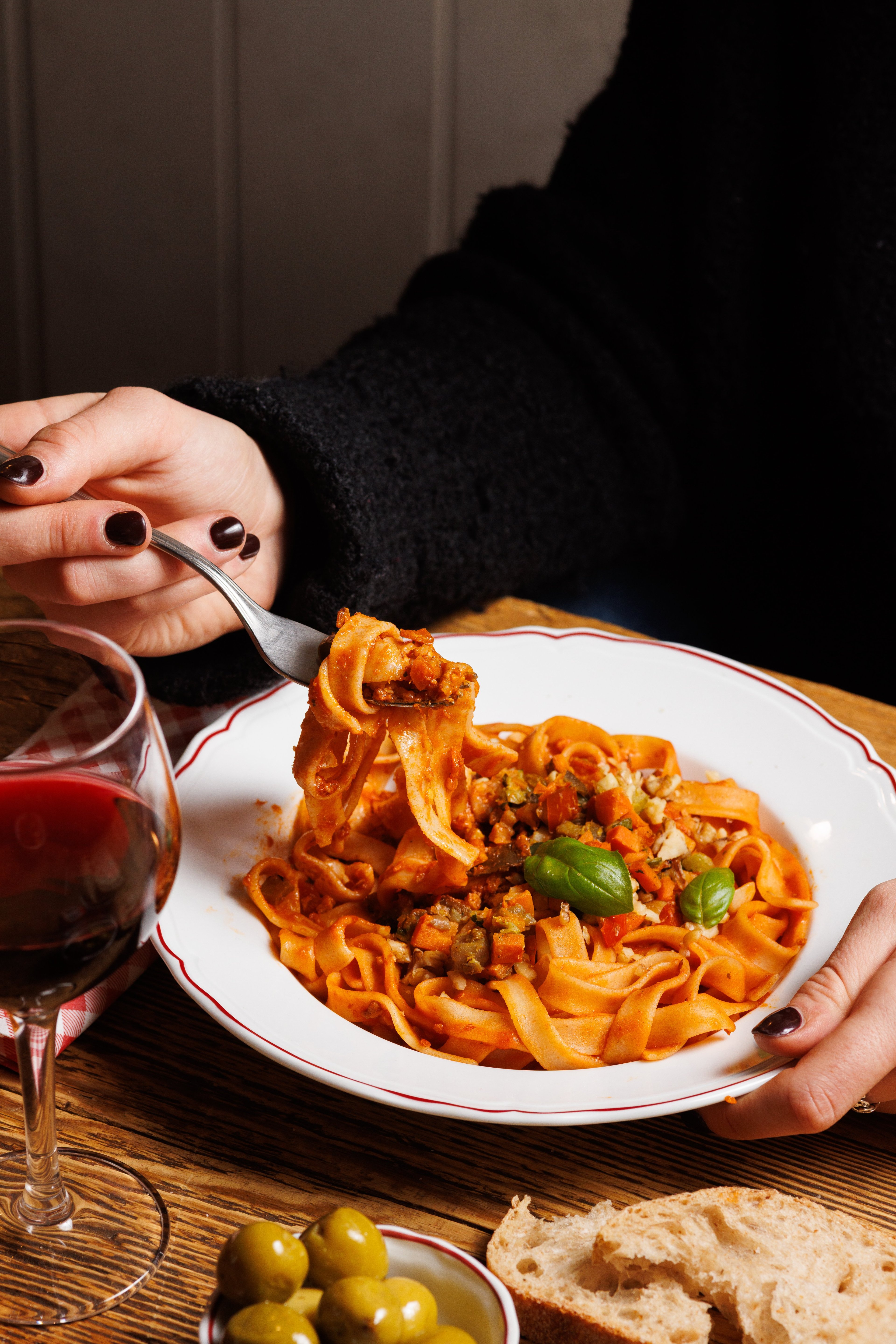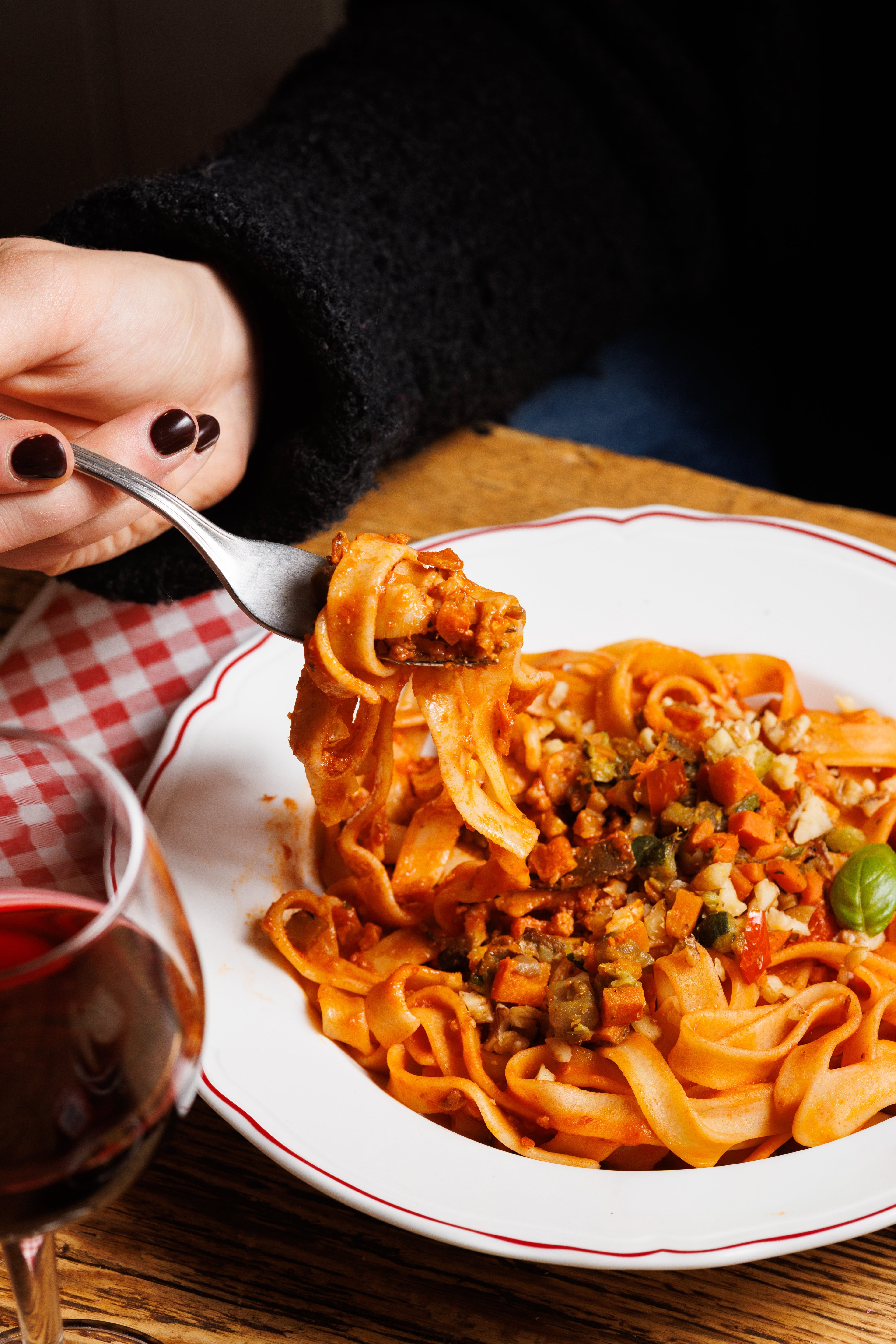 Prendete una dadolata di verdurine siciliane spadellate e abbinatele al ragù plant-based più buono che abbiate mai assaggiato. Finitelo con quel tocco di crunchy che solo le noci san dare, ed ecco a voi la tagliatella perfetta. Provare per credere.
