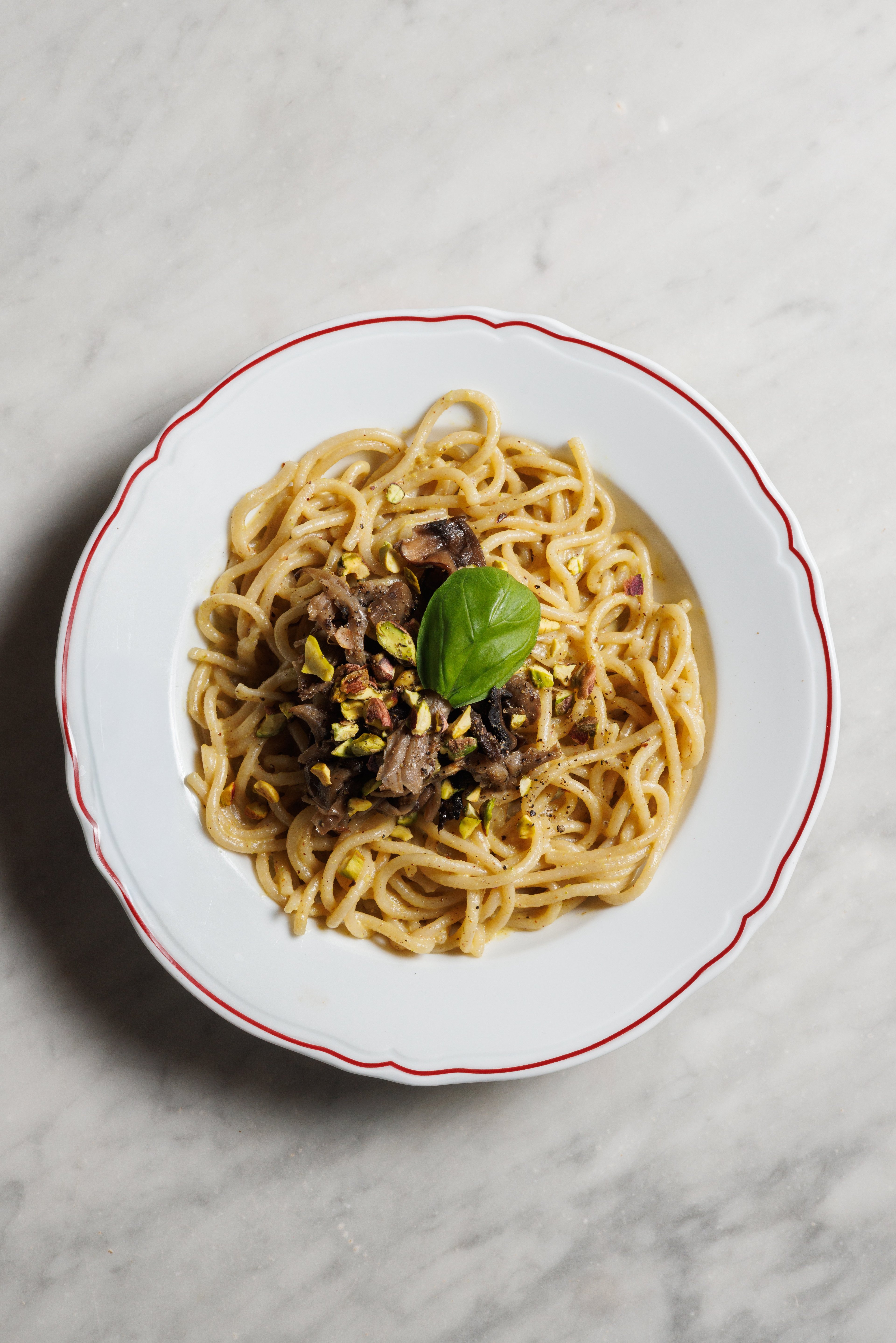 Siamo stanchi di sentir dire che i piatti vegani sono tristi, noiosi, poco gustosi. Vi presentiamo qui una combo clamorosa: il pistacchio in doppia veste, come pesto (amato ormai da tutti) e come granella, per quel tocco di crunchy necessario. In abbinamento una spadellata di funghi, cremosi e gustosissimi. Provate ora a dire che la cucina veg è boring...