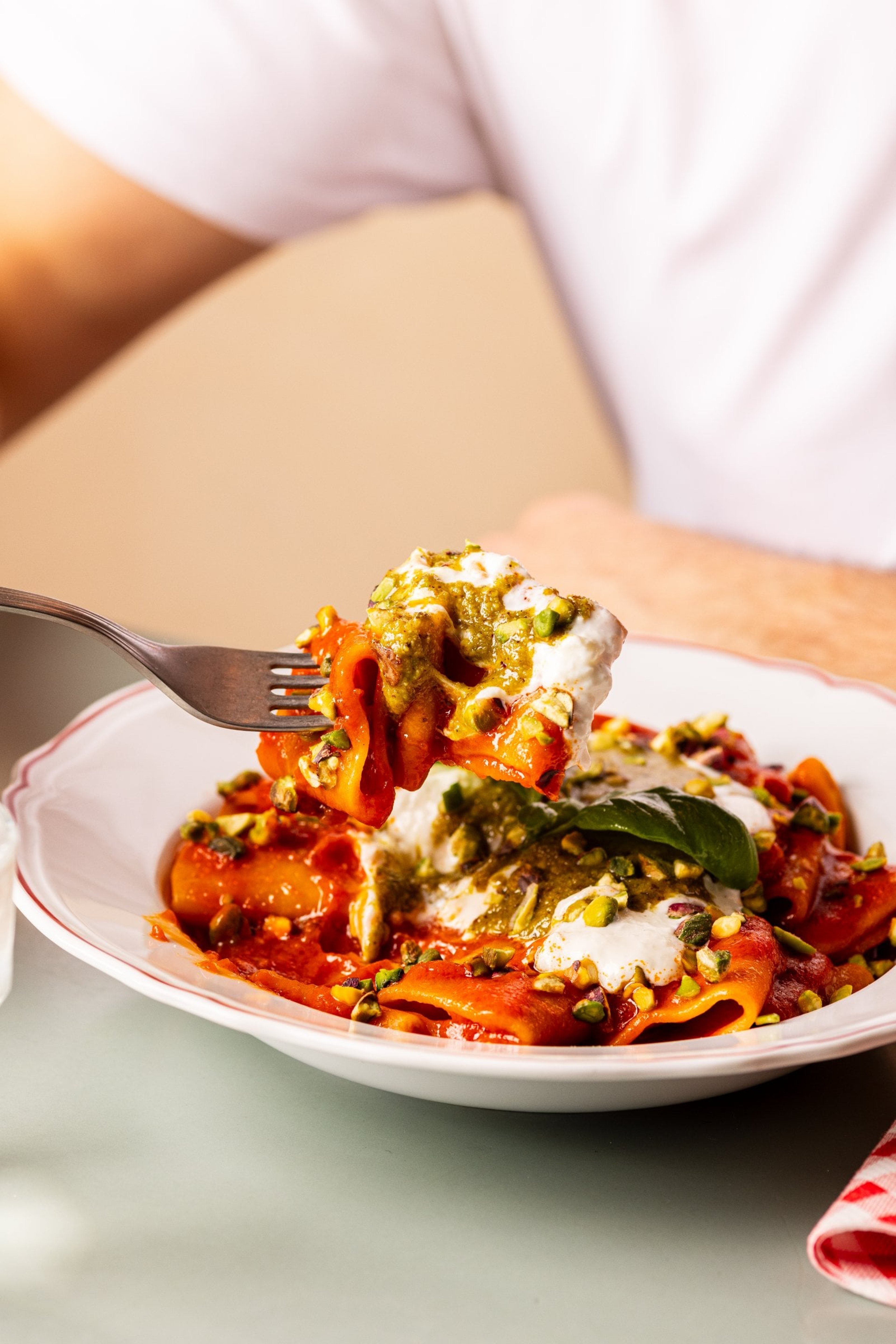 Tutto il gusto della Tricolore, tutta la cremosità della stracciatella, ma senza latticini. Pacchero di Grani Antichi, salsa di datterino siciliano, pesto e granella di pistacchi del Mediterraneo. E poi c’è lei, la nostra stracciatella, morbida, fresca, e sorprendentemente plant based.